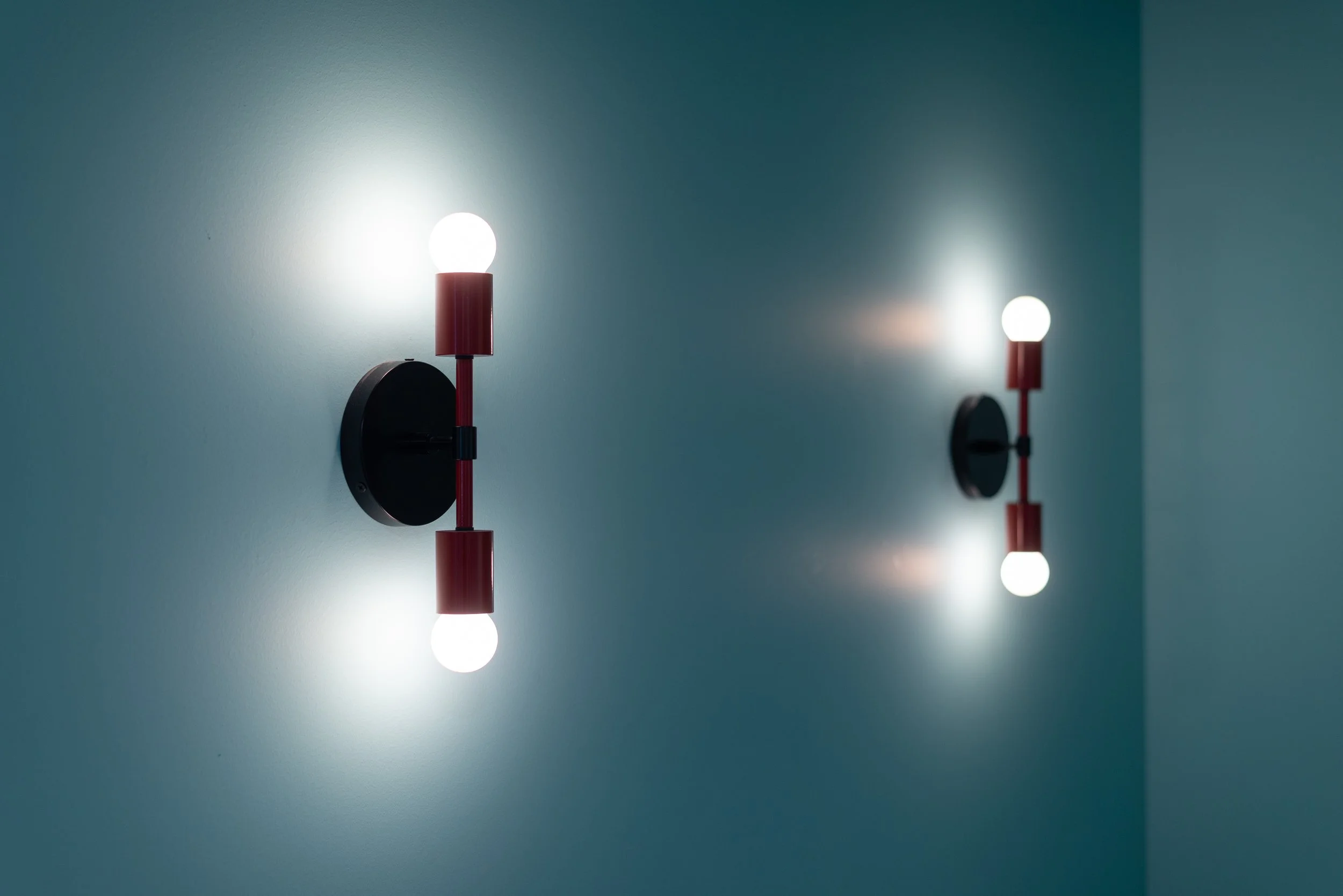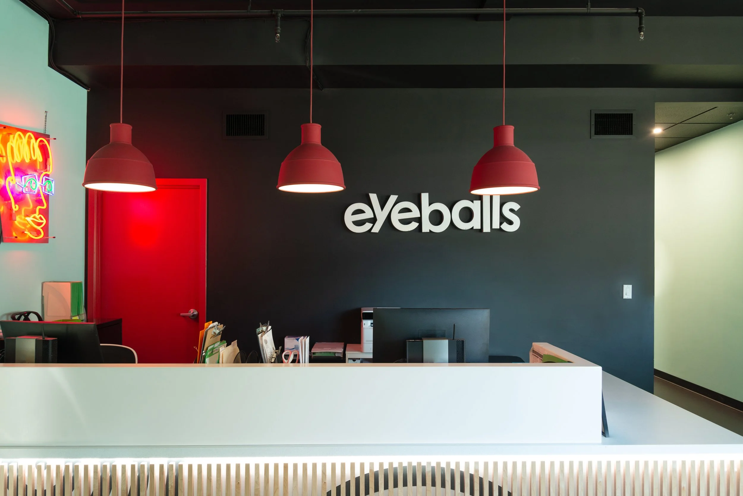 When it came time to relocate offices, this optometrist wanted a space as playful as their name. We used their existing brand colors to create a clean and colorful space to welcome patients. A sleek reception desk accented by red pendant lights and a graphic sign anchor the public space. Window displays featuring eyeglasses add interest from the street.